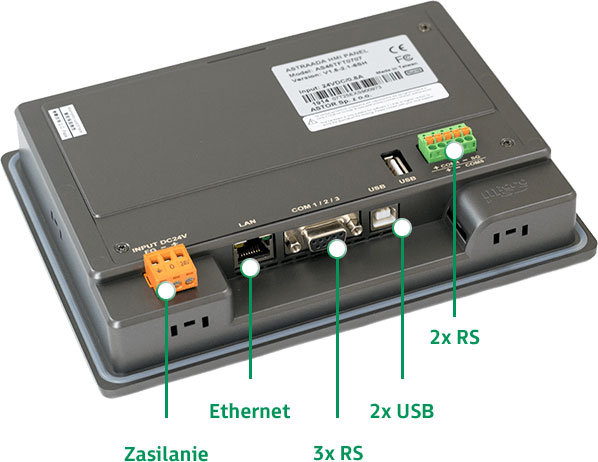 W zależności od modelu Astraada HMI Panel posiada od 2 do 5 niezależnych portów szeregowych