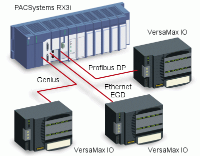 Systemy sterowania zbudowane w oparciu o kontrolery PACSystems RX3i mogą zostać rozbudowane o obsługę dodatkowych sygnałów I/O przy pomocy lokalnych lub oddalonych kaset rozszerzających oraz za pomocą oddalonych układów I/O komunikujących się z systemem nadrzędnym w sieci Ethernet, Genius, Profibus DP, DeviceNet oraz Profinet.