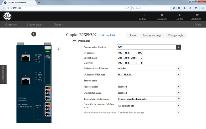 Każdy błąd w węźle RSTi-EP automatycznie generuje wpis w tablicy błędów. Dostęp do tablicy błędów możliwy jest za pośrednictwem wbudowanego WebServera, który pozwala dodatkowo na podgląd aktualnych wartości procesowych, forsowanie sygnałów, obsługę alarmów i ustawienia wartości domyślnych na wyjściach RSTi-EP. WebServer pozwala także na sprawdzenie wersji firmware oraz na jego aktualizację w pojedynczych modułach lub jednocześnie w kilku.