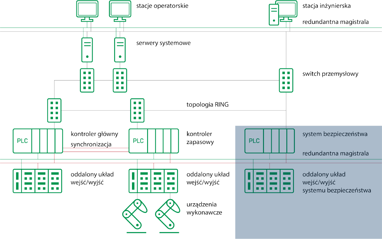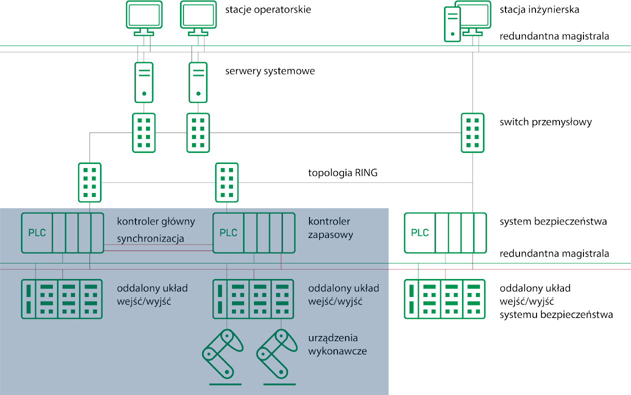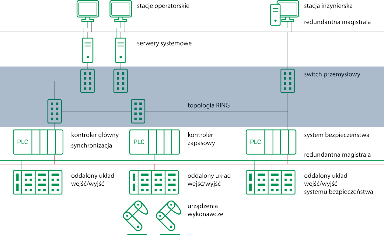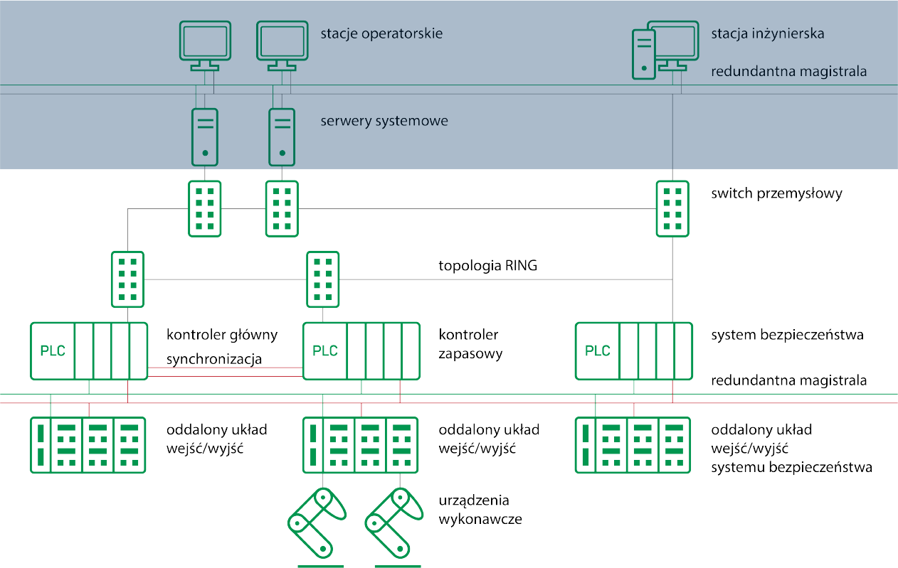 Redundancja w systemie sterowania może być realizowana na różnych poziomach, a odporność systemu na awarie będzie wynikała z architektury układu.