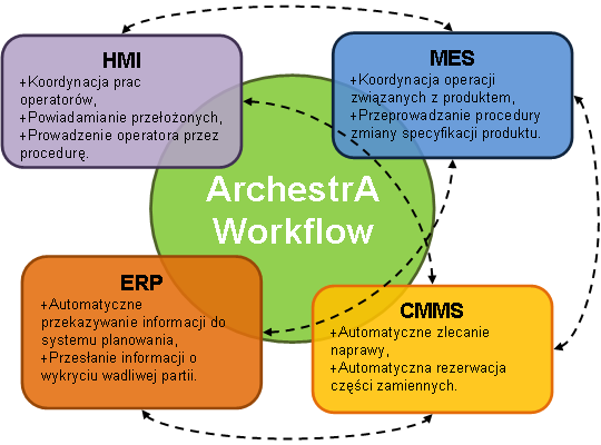 Korzystając z ArchestrA Workflow, firmy mogą ustandaryzować procesy zawierające zwyczajne, niezaplanowane lub awaryjne zdarzenia, zapewniając właściwym osobom dostęp do właściwych informacji we właściwym czasie. System zbudowany w oparciu o rozwiązanie ArchestrA Workflow pozwala na odfiltrowanie ogromu informacji trafiających do pracownika i dostarcza mu tylko te, które są zaadresowane do grupy, w której się znajduje. W przypadku awarii i sytuacji alarmowych, system automatycznie powiadamia odpowiednie służby i uruchamia procedurę, według której realizowane mają być czynności prewencyjne. Kadara zrządzająca i dyrektorzy produkcji otrzymują w sposób automatyczny raporty w dedykowanym formacie zawierające informacje, które są wartościowe z punktu widzenia pełnionych przez nich funkcji i podejmowanych decyzji.