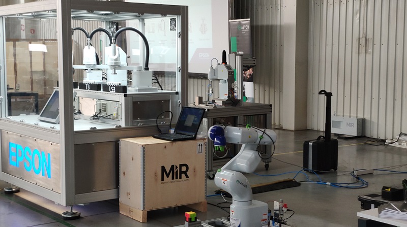 Demo 2: Robot EPSON SCARA T6 620S z systemem wizyjnym we współpracy z robotem mobilnym MiR,