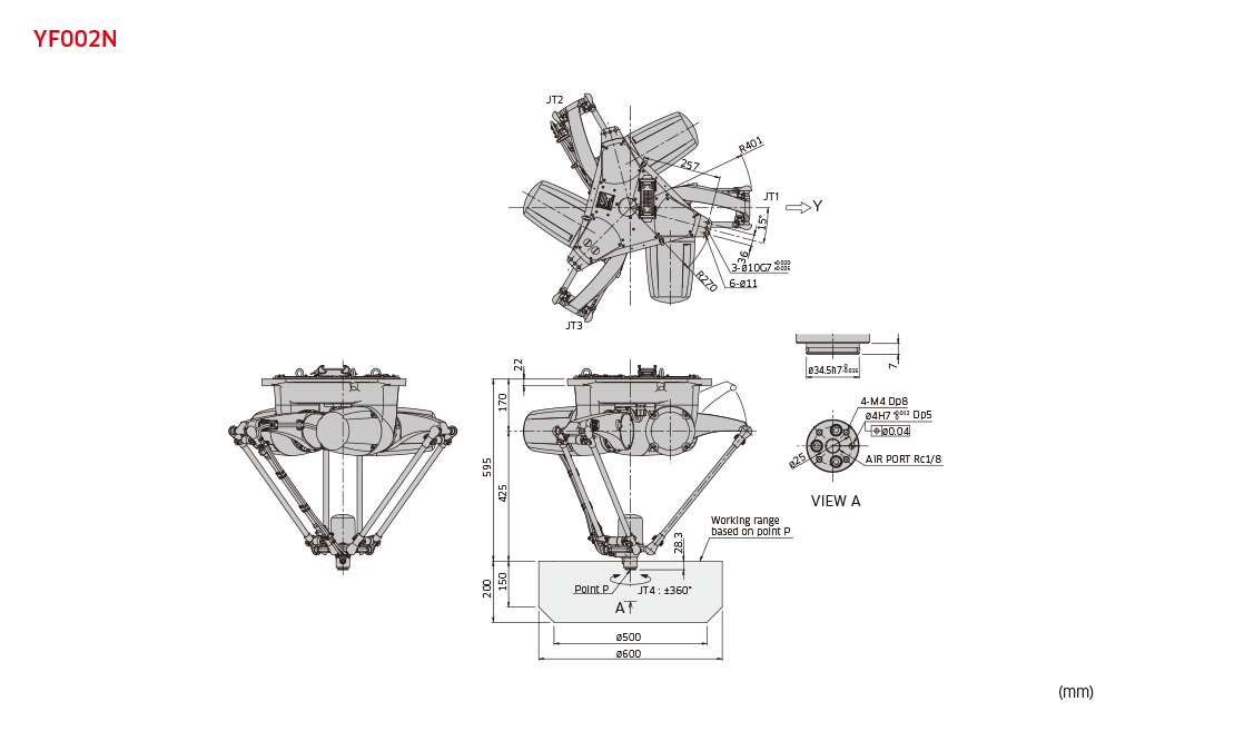 Opis robota:Robot YF003N ma zastosowanie wszędzie gdzie realizowane jest szybkie i precyzyjne przenoszenie ładunków o małej masie. Oferuje on bardzo krótki czas cyklu 0,27 s dla ładunku 1 kg i 0,45 przy przenoszeniu 3 kg, oraz obszar pracy o średnicy 1,3 m. Parametry robota umożliwiają wykonanie nawet 175 cykli na minutę, a zastosowanie dodatkowej, piątej osi pozwala przenosić dwa elementy w jednym cyklu i prowadzi do dodatkowego wzrostu wydajności robota. |